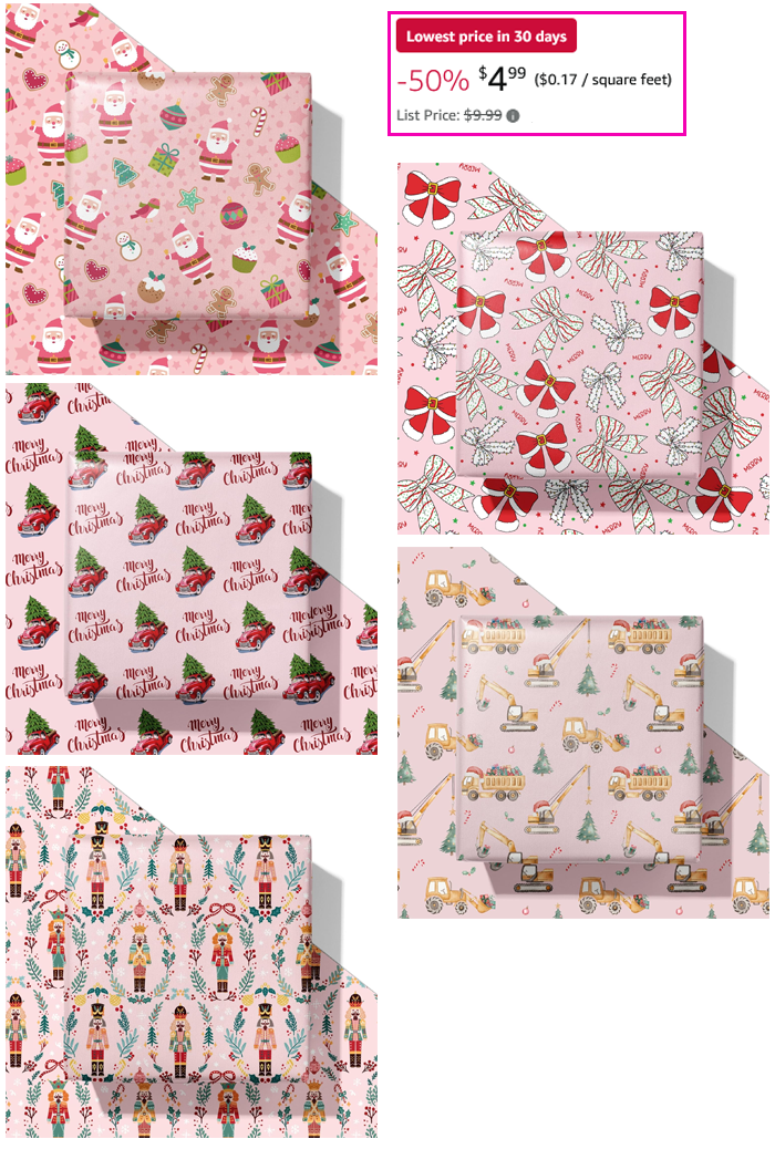 Pink Christmas Wrapping Paper, 40×28 Inches, 4 Folded Sheets for $4.99 (Reg $9.99)!