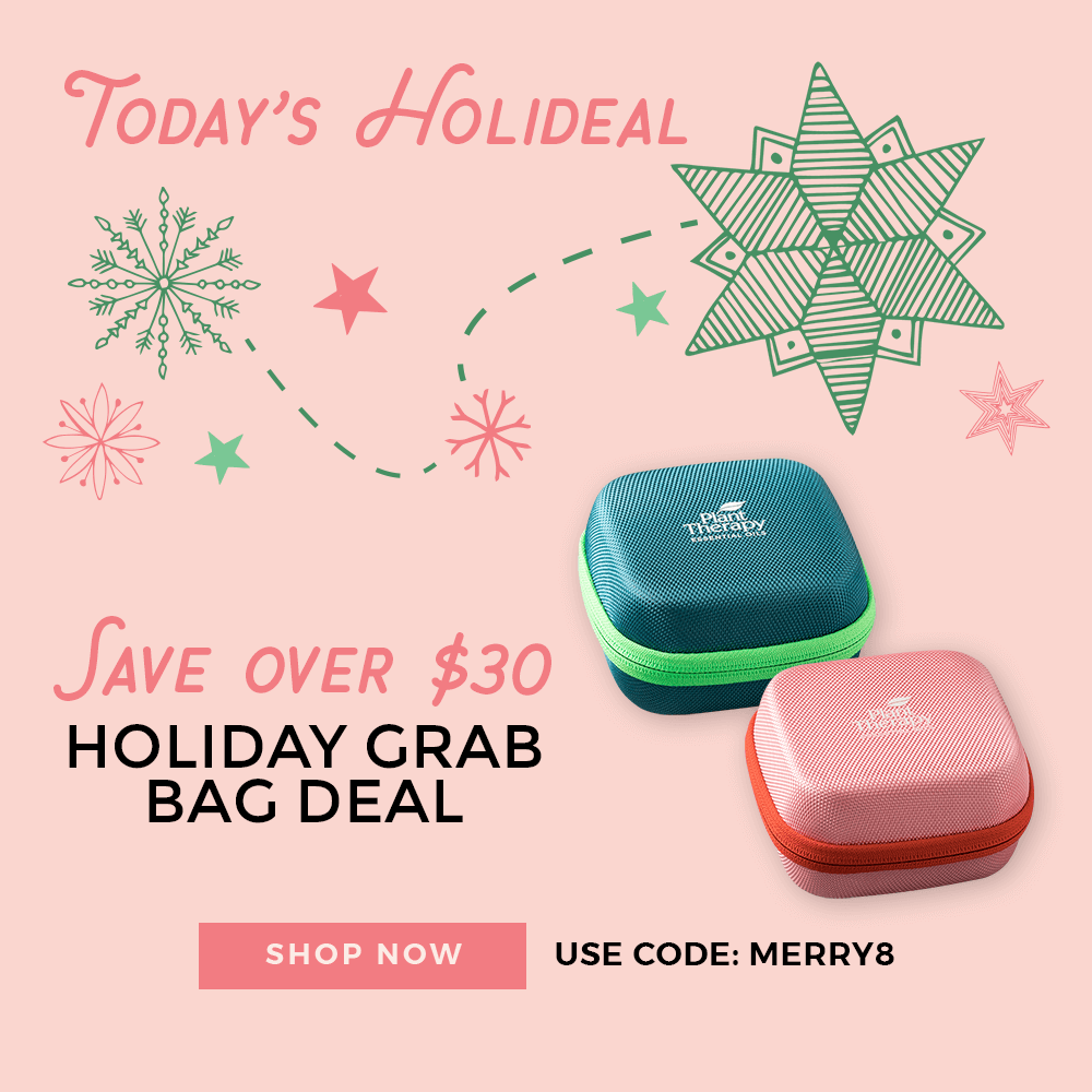 Offer valid starting at 8:00 a.m. Mountain Standard Time (MST) on 12/09/19 and expires at 7:59 a.m (MST) 12/10/19. Grab bags contents have a minimum retail value of at least $75.00. Coupon is not valid with any other coupons or offers. Discount does not apply to gift certificates, shipping, or sales tax. Promotion is only valid online at www.PlantTherapy.com, and not valid through any other outlets. There is no limit to the use of this coupon, within the restriction outlined here, or as determined by Plant Therapy at any time. Plant Therapy reserves the exclusive right to cancel and/or change this promotion at any time. Available while supplies last. No rainchecks.