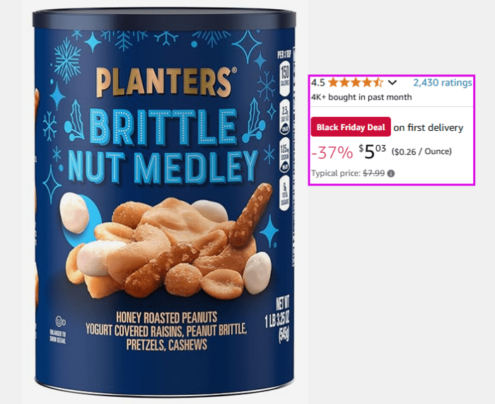 PLANTERS Holiday Brittle Nut Medley Trail Mix for $5.59 (Reg $7.99)!