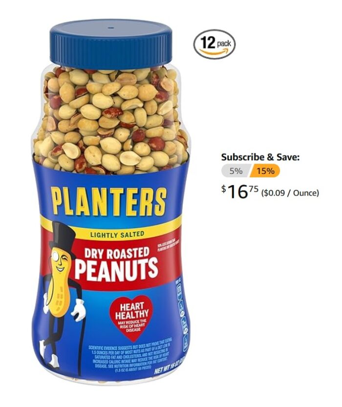 PLANTERS Lightly Salted Peanuts, 16oz (12 Pack) for $19.70 (Reg $23.70)!