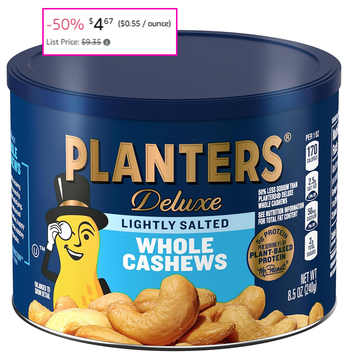 Planters Lightly Salted Whole Cashews (8.5 oz Canister) for $5.50 (Reg $9.35)