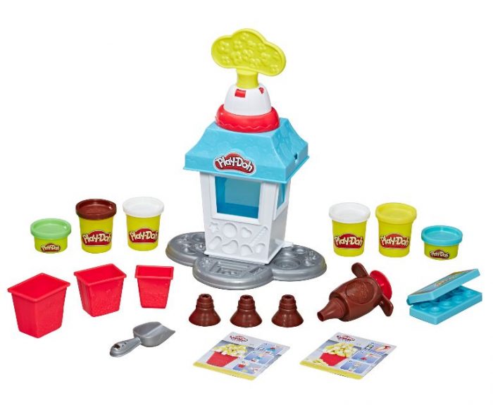 - PLAY-DOH POPCORN MAKER – This toy popcorn machine for kids ages 3 and up gets cranks buckets of pretend popcorn again and again!