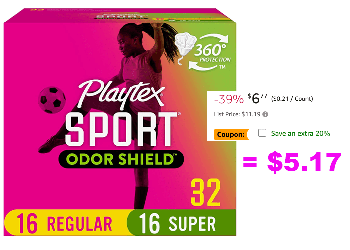 Playtex Sport Odor Shield Tampons, Unscented – 32ct for $7.96 (Reg $11.19)!
