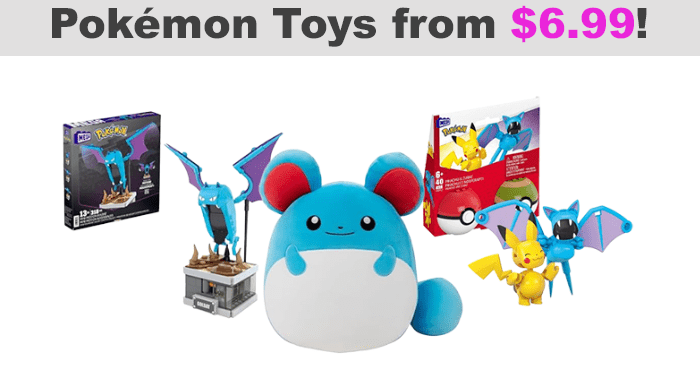 If you have a kid who’s a big Pokémon fan, take a look at all these cool toys on sale! There are building sets, plush, and more!