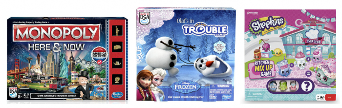Popular Board Games $5.00 (reg $10) – Olaf’s in Trouble, Shopkins, Monopoly Here & Now, More!