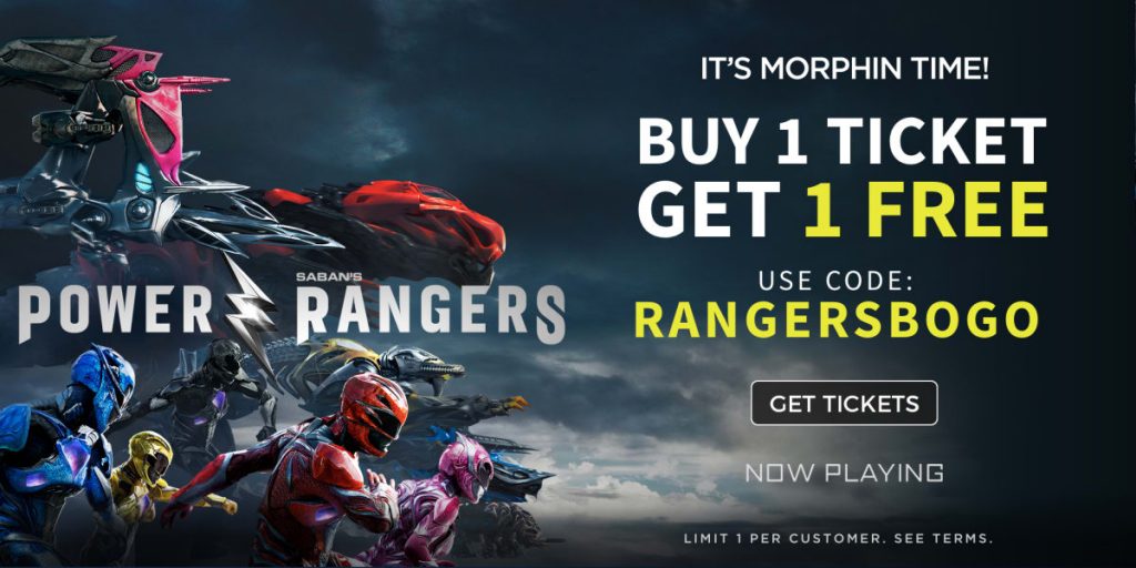 You can finally see Saban’s Power Rangers as early as tonight at theaters! Plus, if you purchase two tickets through Atom Tickets you can use code RANGERSBOGO to get 1 ticket for FREE!