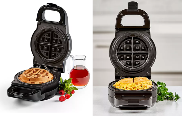 This waffle maker can create sweet or savory stuffed or deep-pocket waffles! Enjoy crispy, golden waffles with your favorite fillings, batters and flavors. YUM!