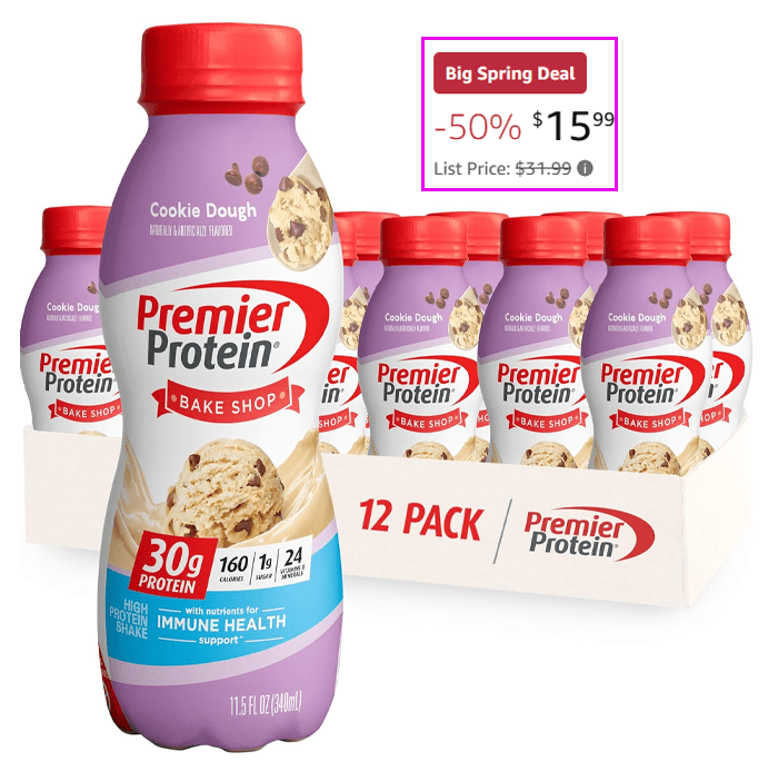 Premier Protein Shake, Cookie Dough, 11.5 fl oz (Pack of 12) for $15.99 (Reg $31.99)!