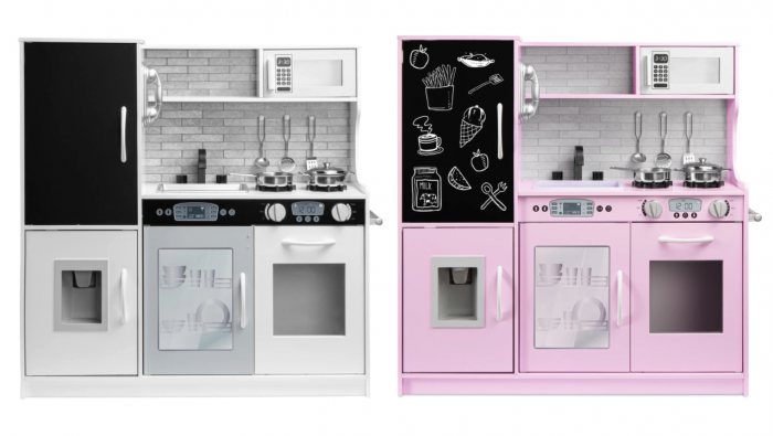 Your little ones can jot down recipes as they play grownup all day long! This cute kitchen has an icemaker, microwave, phone, and other fun features.