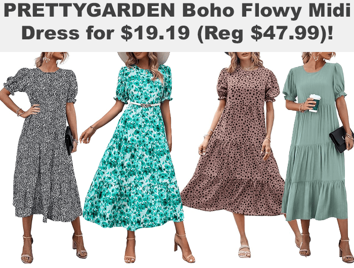 PRETTYGARDEN Boho Flowy Midi Dress for $47.99