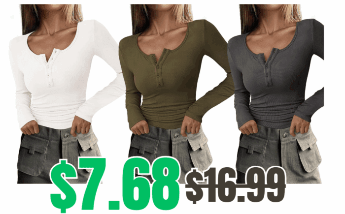 PRETTYGARDEN Fall Long Sleeve Henley T Shirts for $15.37 (Reg. $16.99)