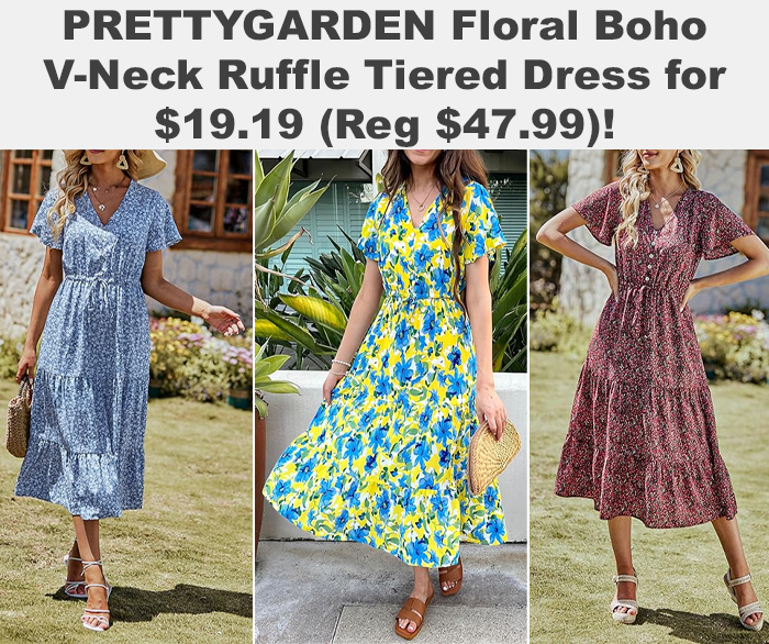PRETTYGARDEN Floral Boho V-Neck Ruffle Tiered Dress for $47.99