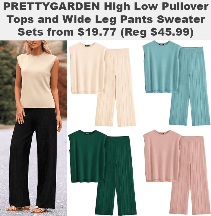 PRETTYGARDEN High Low Pullover Tops and Wide Leg Pants Sweater Sets for $45.99 – $49.99