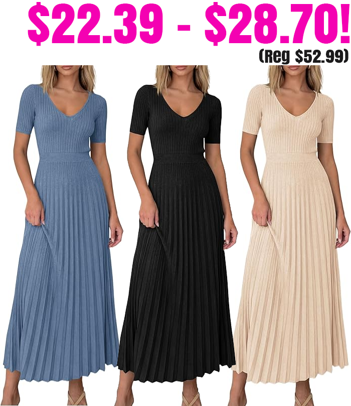 PRETTYGARDEN Midi Pleated Sweater Dresses for $31.98 – $40.99 (Reg $52.99)