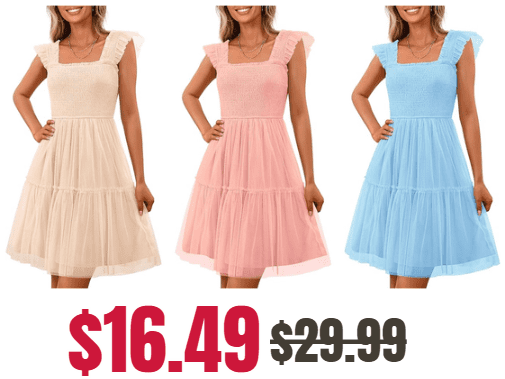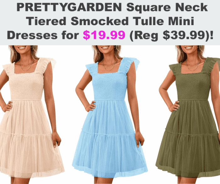 PRETTYGARDEN Square Neck Tiered Smocked Tulle Mini Dresses for $39.99