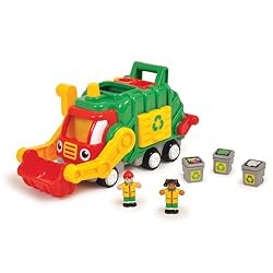 - Friction-powered digger with removable playing figure and 3 rattling boulders