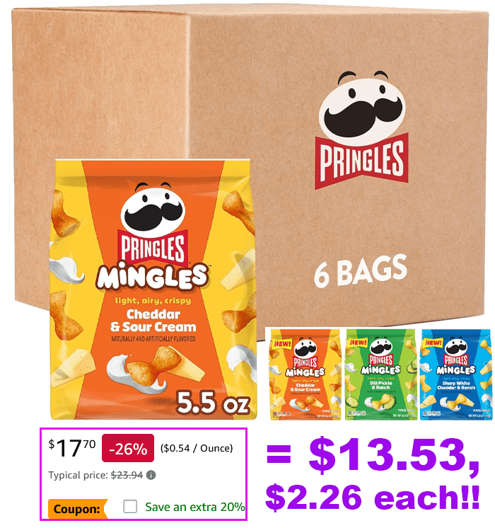 Pringles Mingles Puffed Snacks, 5.5 oz Bags, 6-Pack for $20.82 (Reg $23.94)
