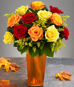50% off One Dozen Autumn Roses w/ FREE Glass Vase, only $19.99