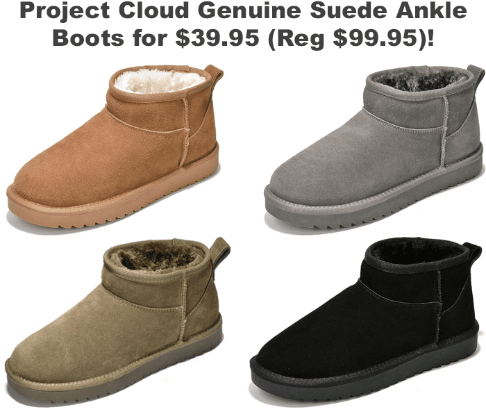 Project Cloud Genuine Suede Ankle Boots for $39.95 (Reg $99.95)!