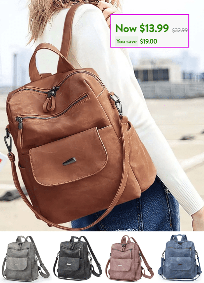 PU Leather Backpack Purse for $13.99 (Reg $32.99)!