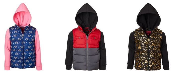 What a cute jacket! It looks like it’s layered with a puffer vest but it’s all one piece! Sizes range from 12-months to big kid 18.