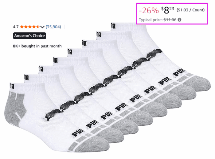 PUMA Men’s 8 Pack Low Cut Socks for $9.68 (Reg $11.06)