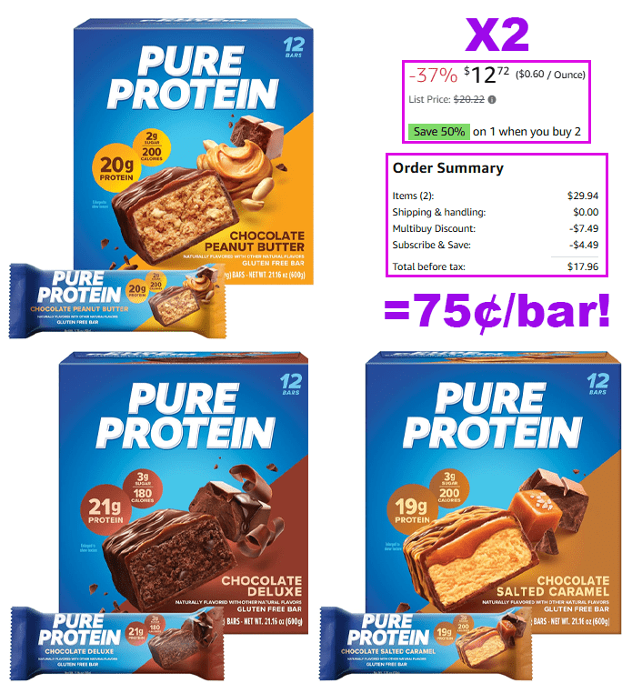 - Pay $17.96 or $20.95 for 2 boxes of 12, or as low as 75¢ per bar!