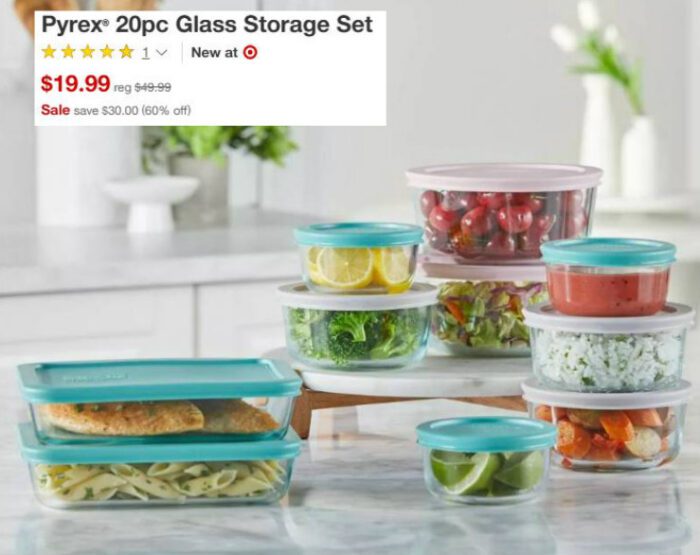 Pyrex 20pc Glass Storage Set for $19.99 (Reg $49.99)
