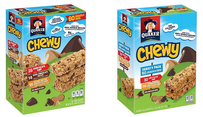 Quaker Chewy Variety Pack with 28 Chocolate Chip, 14 Dark Chocolate Chunk and 18 Peanut Butter Chocolate Chip Bars for $6.48 (after $2.50 Instant Savings, regularly $8.98)