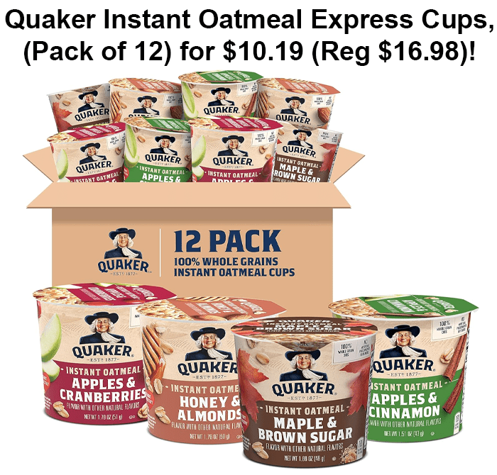 Quaker Instant Oatmeal Express Cups, (Pack of 12) for $13.58 (Reg $16.98)