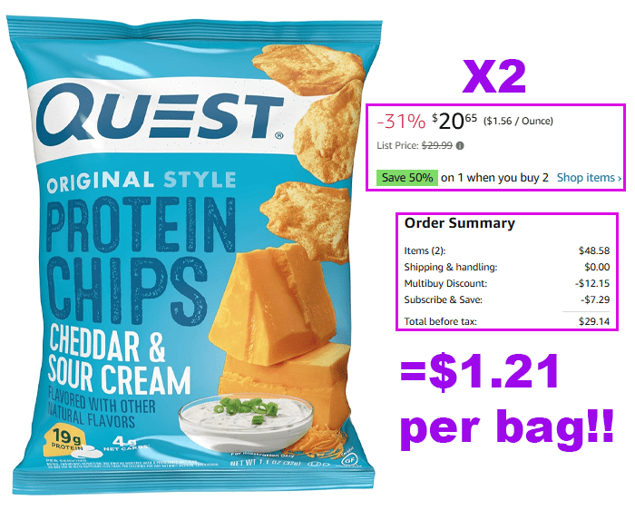 Quest Nutrition Cheddar & Sour Cream Protein Chips, 12-Count for $24.29 (Reg $29.99)!