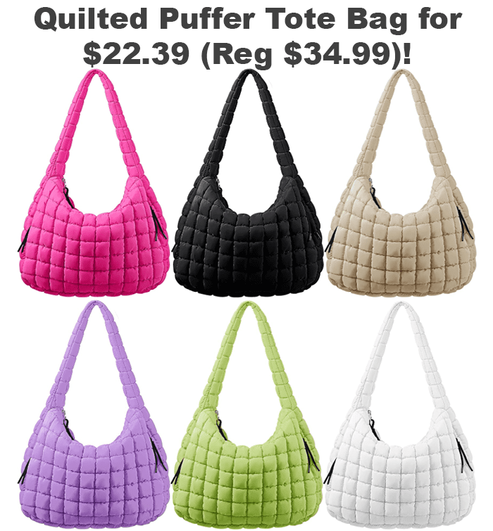 Quilted Puffer Tote Bag for $27.99 (Reg $34.99)