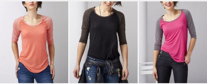 Thes Raglan Tees are perfect for a casual wear, or dress them up with a cute jacket and a pair of booties.  They come in 15 fabulous color combos and run in size S – XXL.  On sale TODAY ONLY.