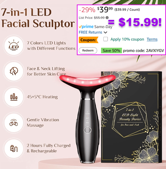 If you’ve wanted to try red light therapy for smoothing facial wrinkles and tightening your neck, check this out! Use it twice a day for 10 minutes.