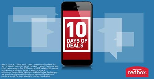 Through September 14, you can text SURPRISE to 727272 and get a surprise code every day from Redbox! Discounts could include: