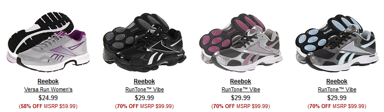 There are some awesome deals on Reebok Running Shoes (both men and women’s) – lots are marked down as much as 70%, giving you options in the $25-30 range (sandals as low as $15). All of them ship for free!