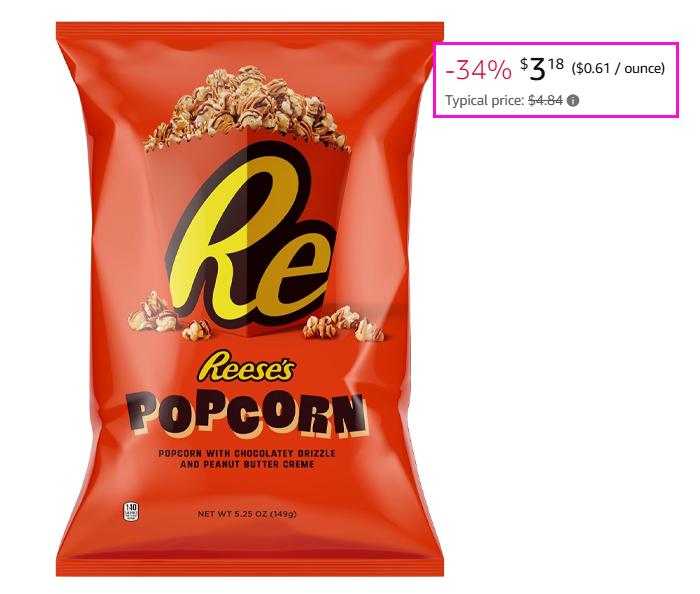 Reese’s Popcorn, 5.25oz for $3.74 (Reg $4.84)