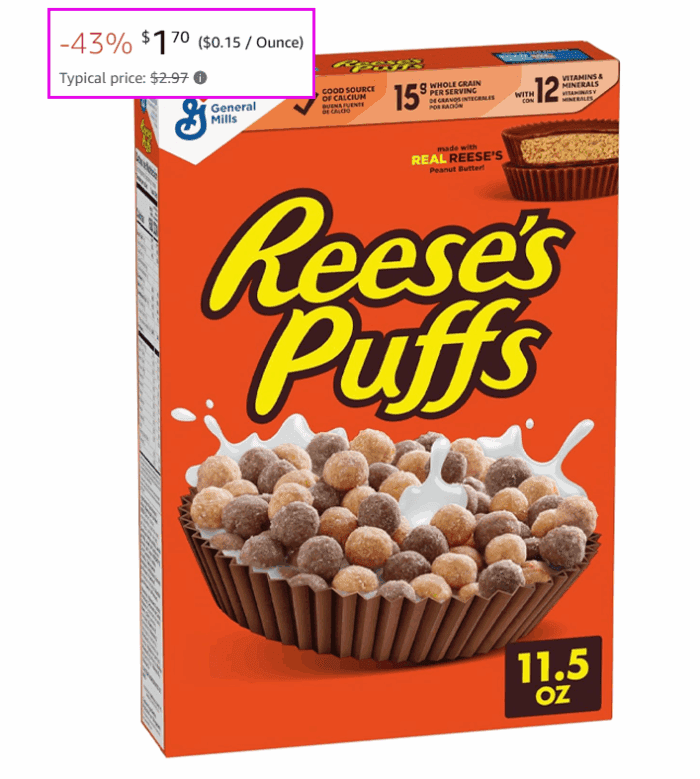 Reese’s Puffs, Chocolatey Peanut Butter Cereal, 11.5 OZ Box for $2 (Reg $2.97)