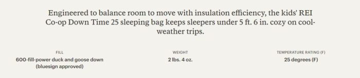 REI Co-op Down Time 25 Down Sleeping Bag – Kids’ $46.83 (reg $189.00)