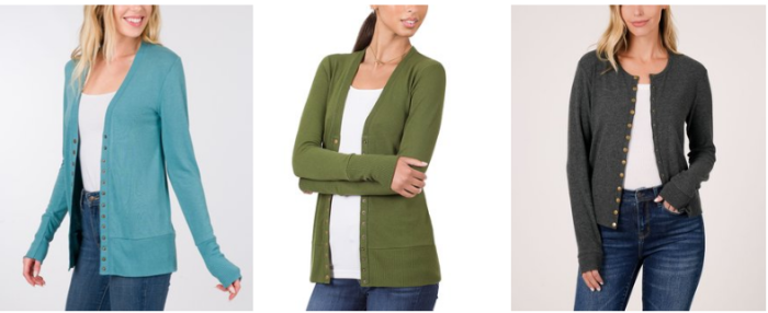 It’s the Famous Snap Cardigans in a variety of delightful summer colors! This piece features ribbing around the sleeves and neckline, trendy snap-up buttons on the front, and a deep v-neck or trendy crewneck. Perfect for wearing around the office or chasing kids around all day, you can’t beat the versatility of this top! Choose from lots of colors in sizes S-3X.