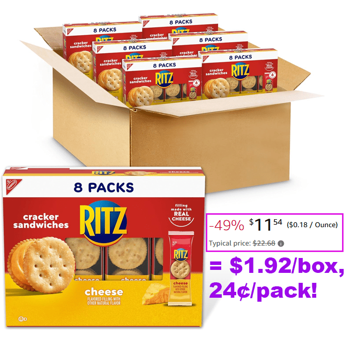 RITZ Cheese Sandwich Crackers, 48 Snack Packs (6 Boxes, 8 Crackers Per Pack) for $13.58 (Reg $22.68)