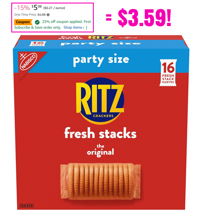 RITZ Fresh Stacks Original Crackers, Party Size, 23.7 oz (16 Multi Snack Packs) for $5.98