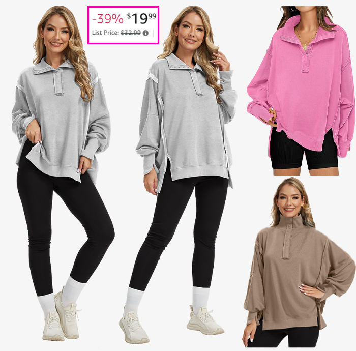 RUBZOOF Oversized Henley Sweatshirt for $19.99 (Reg $32.99)!