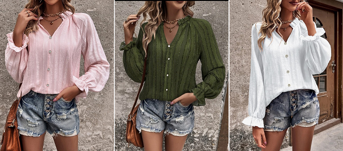 This top is so chic with elegant ruffle detail and flared sleeves. Pair it with jeans or a pencil skirt.