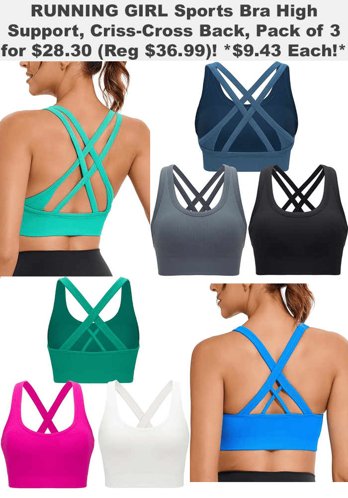 RUNNING GIRL Sports Bra for Women High Support, Criss-Cross Back, Pack of 3 for $31.44 (Reg $36.99)! *BOTTOM STYLE IN PICTURE*