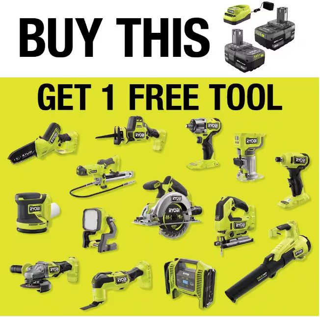 This is a great battery that can connect to a variety of RYOBI ONE+ tools, and you’ll get one tool for free with this deal!