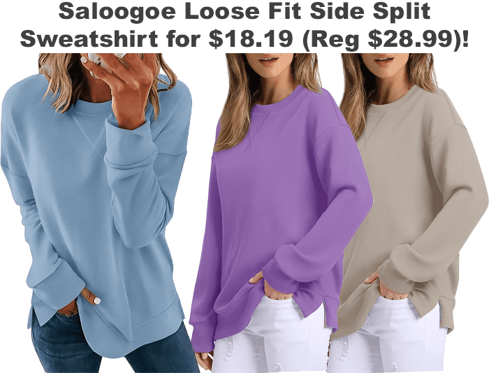 Saloogoe Loose Fit Side Split Sweatshirt for $25.99 (Reg $28.99)!