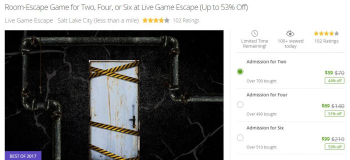 Guess what, Groupon also has a deal for Live Game Escape. Remember to watch for extra discount codes to save even more!