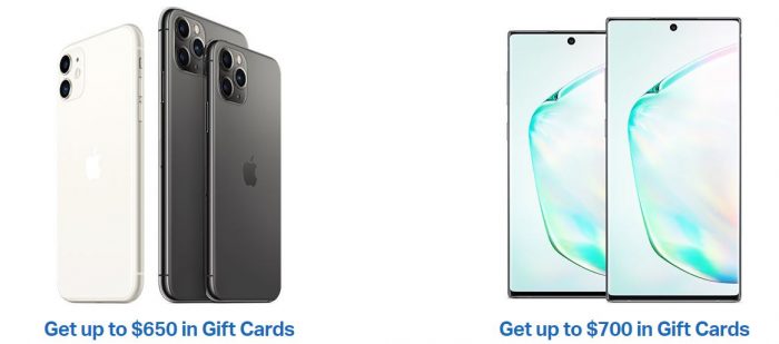 - No trade-in? You can still get a Sam’s Club gift card for up to $450 with purchase and activation for select Samsung phones including the GS10, 10+, Note10, 10+, Note 9 GS9, GS9+