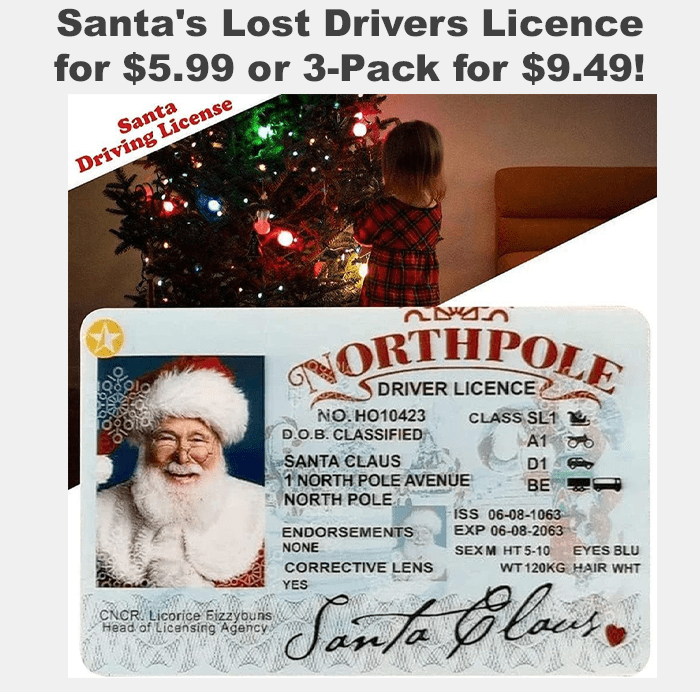 Santa’s Lost Drivers Licence for $11.98 or 3-Pack for $18.98